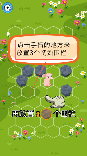 1、开启拦猪挑战:进入游戏熟悉规则,明确 “阻止小猪逃出围栏” 目标,解锁初始六边形棋盘关卡。