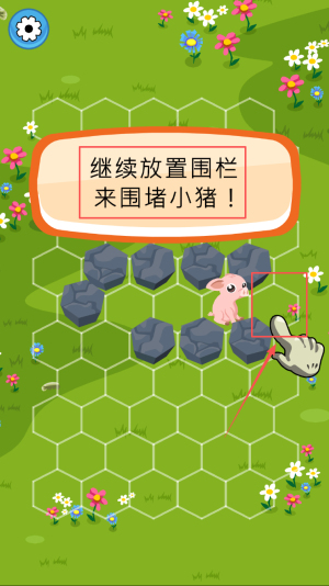 2、玩法益智烧脑:以六边形棋盘为载体,通过放置障碍物拦猪,每步需规划路线,锻炼策略思维。