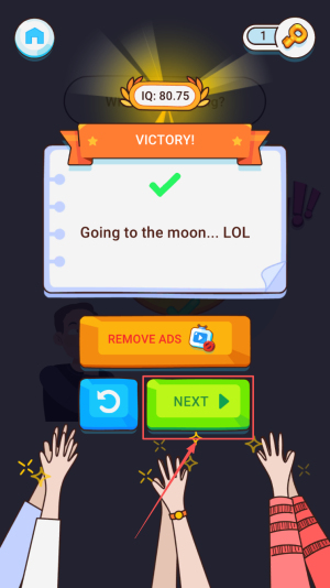 4、最后,查看IQ评分,点击“NEXT”进入下一关。