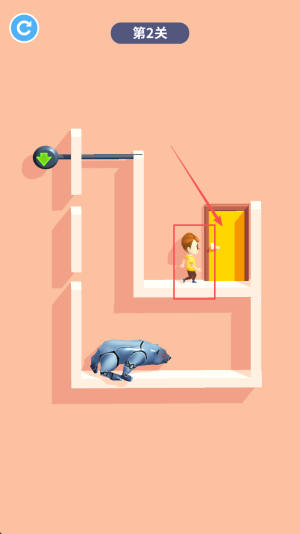1、首先,第1关按住屏幕向下拉盖即可通关。