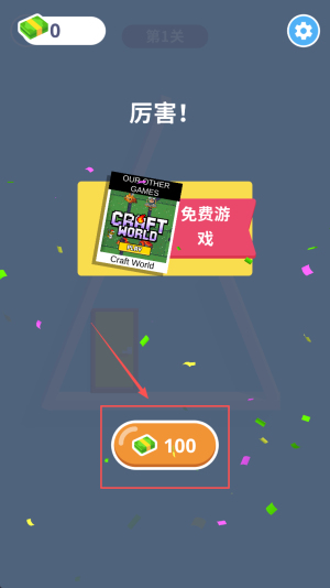 4、最后,出现“厉害!”点“免费游戏”进入Craft World。