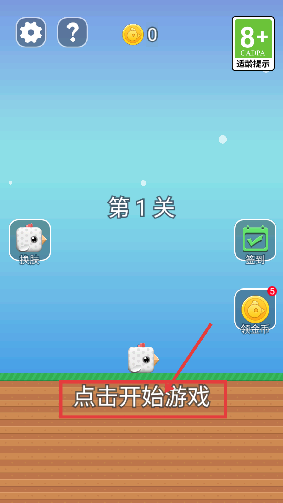 1、进入游戏后,在第1关界面点击【点击开始游戏】按钮,正式开启第1关的闯关挑战。