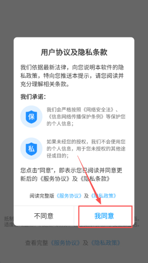 1、首先,阅读并同意用户协议及隐私条款,点击“我同意”以继续。