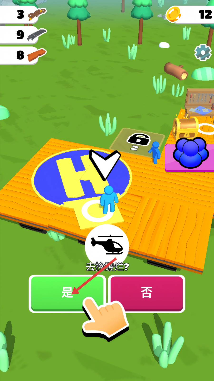 1、出现【去捡破烂?】提示时,点击【是】,开启资源收集流程,为后续发展铺路。