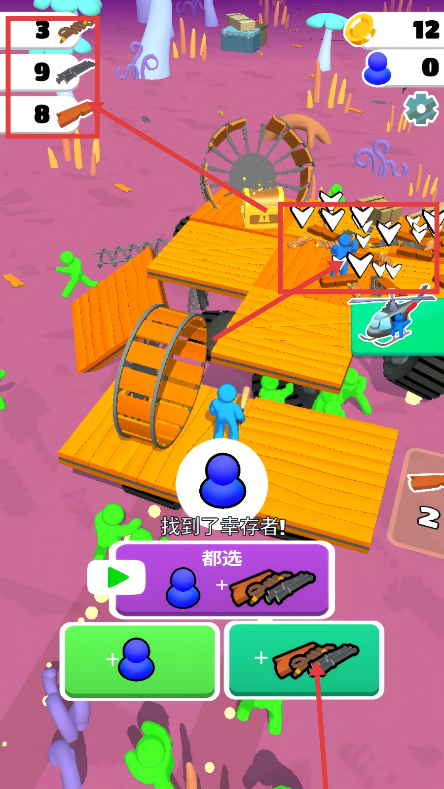 2、找到幸存者后,优先选择带有资源的选项,可获取【3-绳索】【9-金属】【8-木材】等物资。