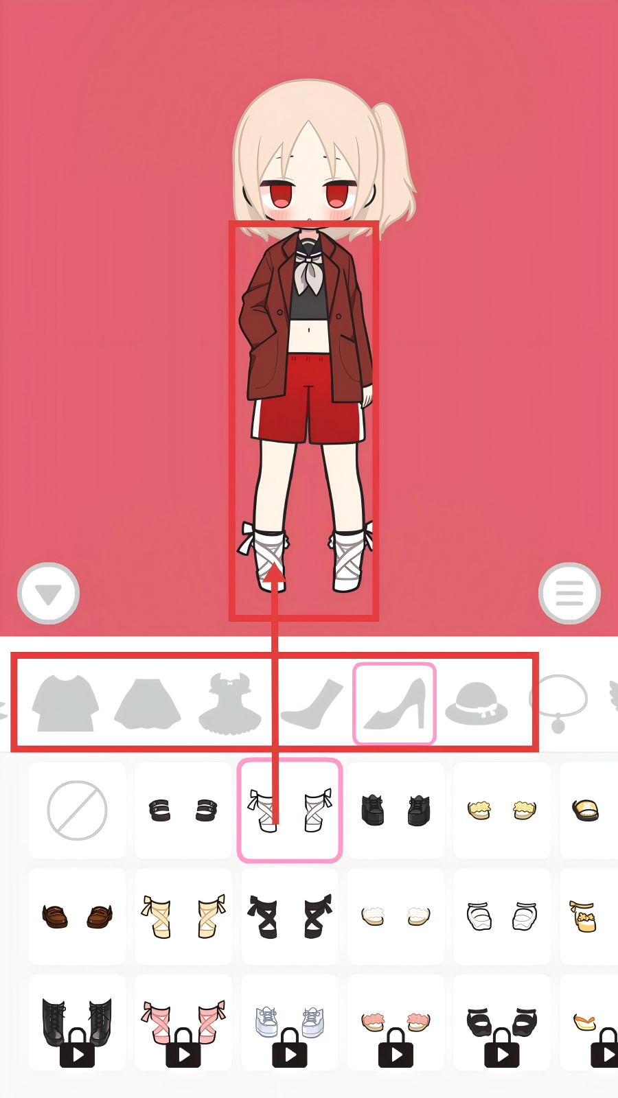 3、切换到服饰选择区域,从鞋子、外套等各类服饰选项中挑选,为角色搭配出独特的穿搭风格。