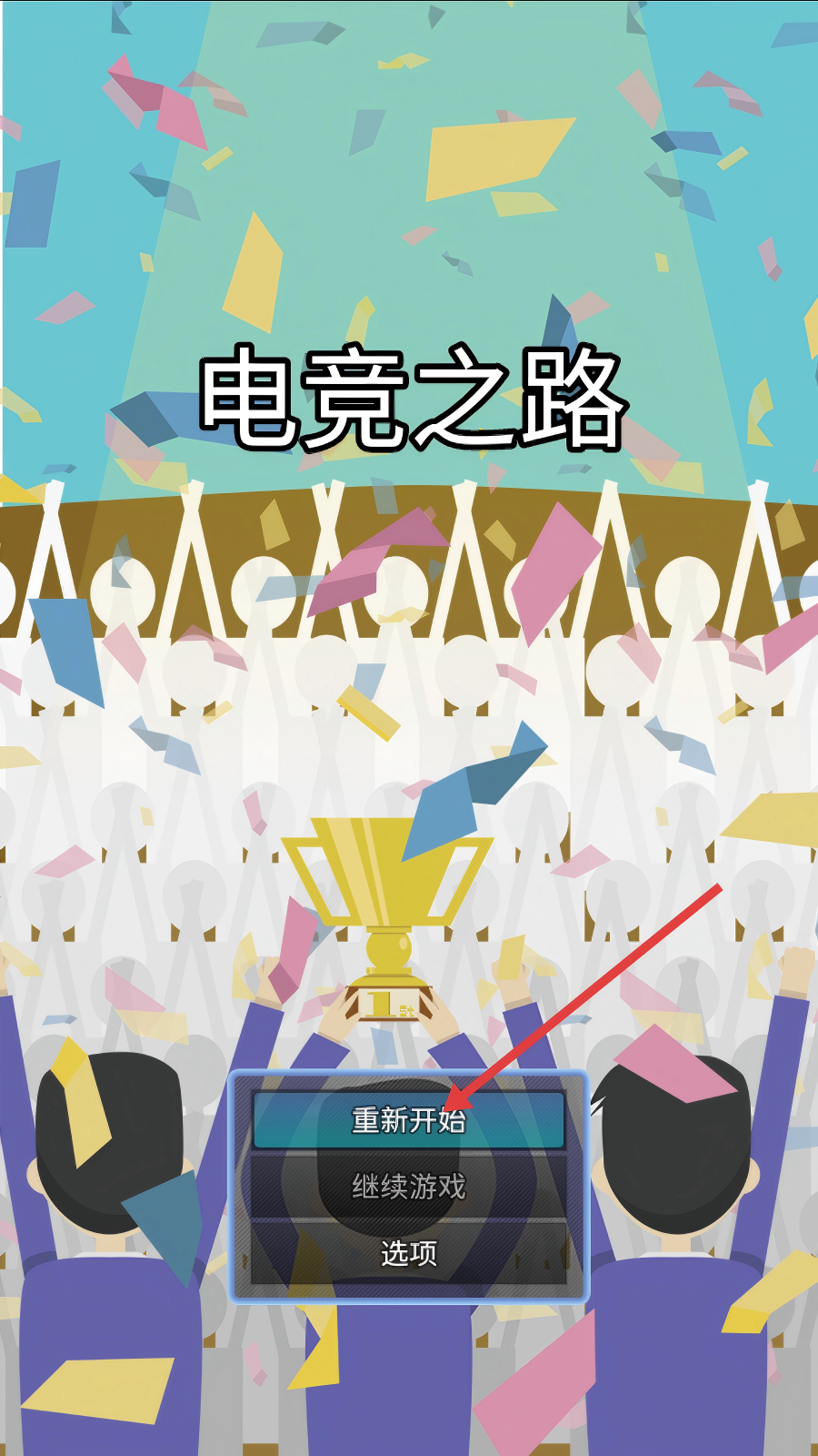 1、进入《电竞之路》游戏,点击【重新开始】按钮,即可开启一段全新的电竞生涯挑战。