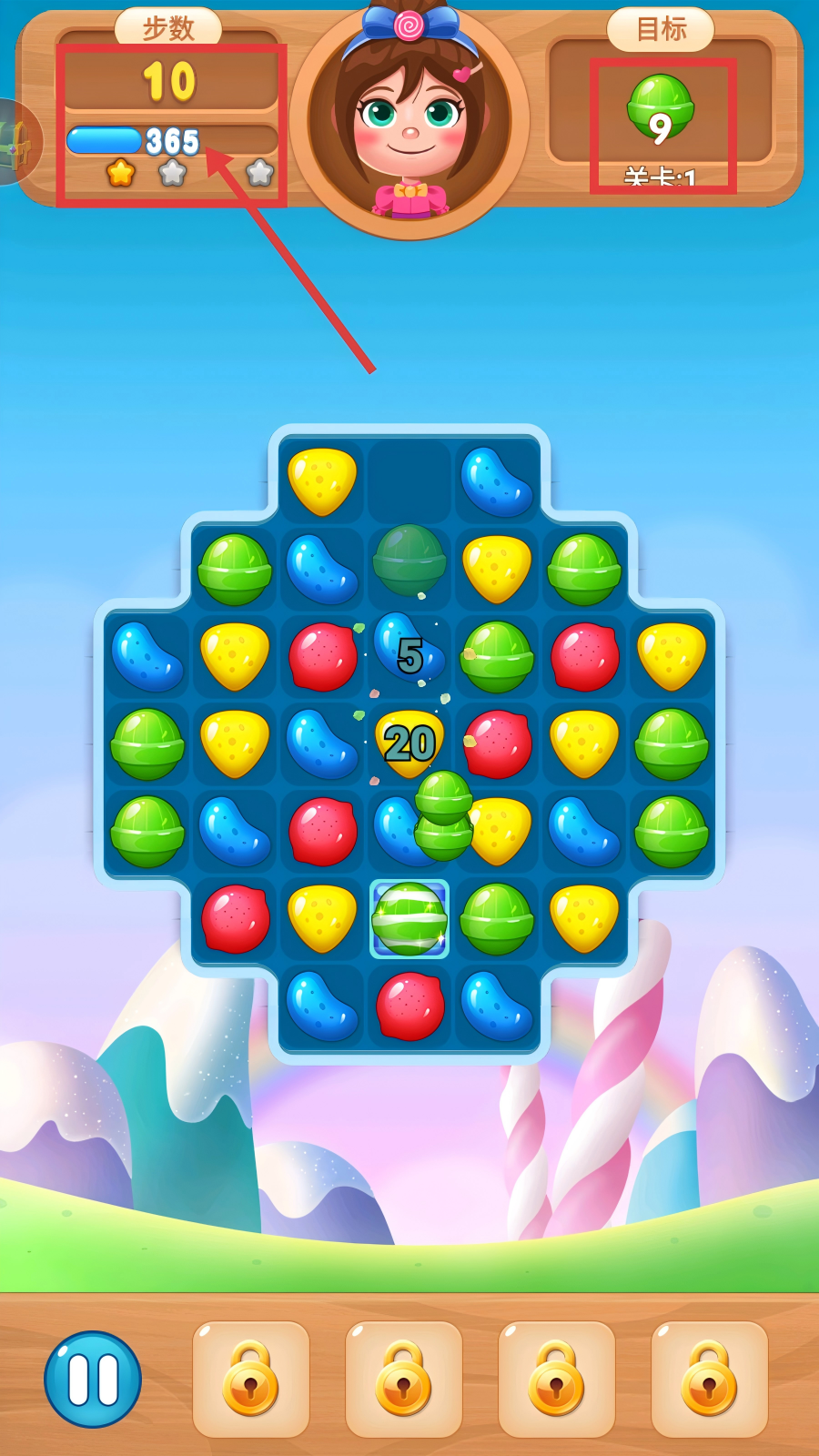 4、棋盘分析策略:开局先观察整体布局,寻找最佳消除组合,优先处理底部糖果创造连锁反应。