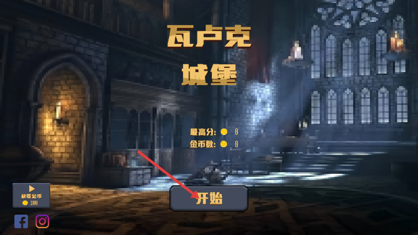 1、进入游戏界面,点击“开始”按钮,开启在瓦卢克城堡的冒险。