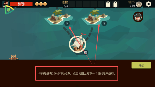 2、如何航行至下一个岛屿?在航海地图上,点击你想要前往的岛屿,消耗行动点数进行航行。