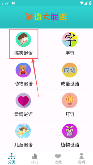1、首先,选择“搞笑谜语”分类开始游戏。