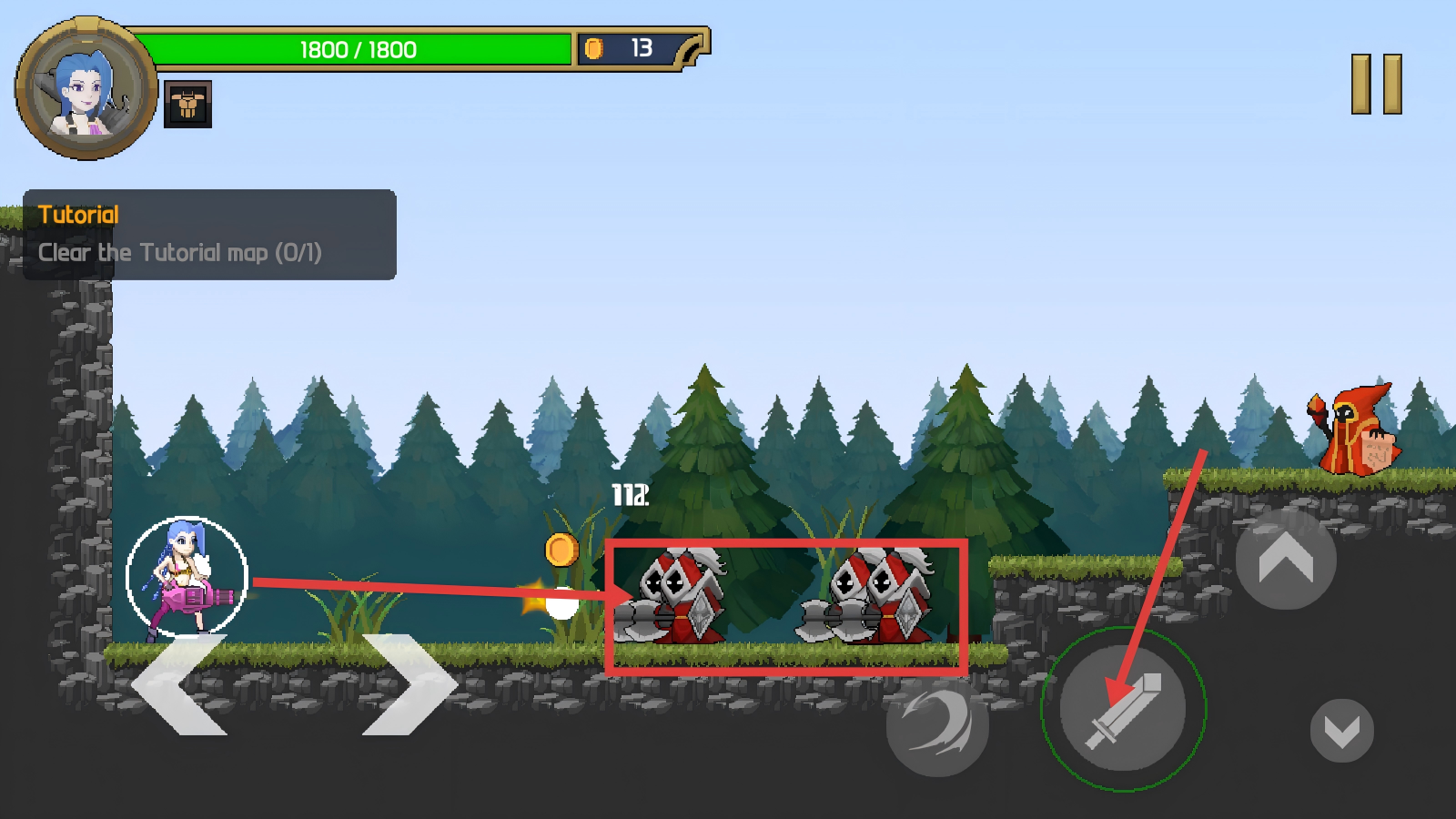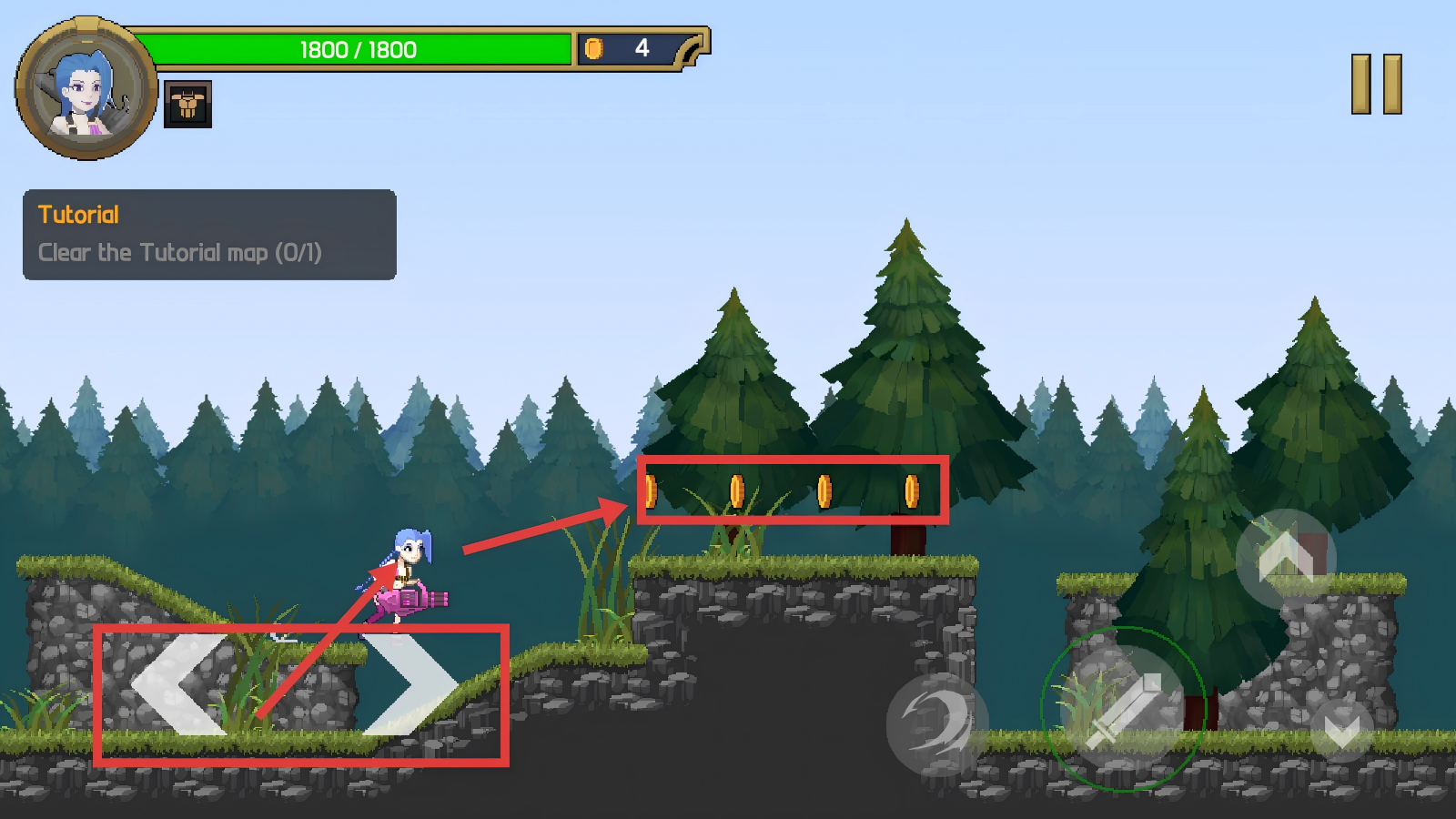 2、在教程地图中,通过左右方向键操控角色移动,收集场景中的金币,积累资源。