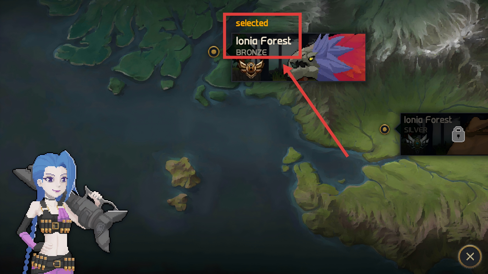 4、选择【IoniaForest】区域(青铜段位),进入该场景继续冒险,推进游戏进度。