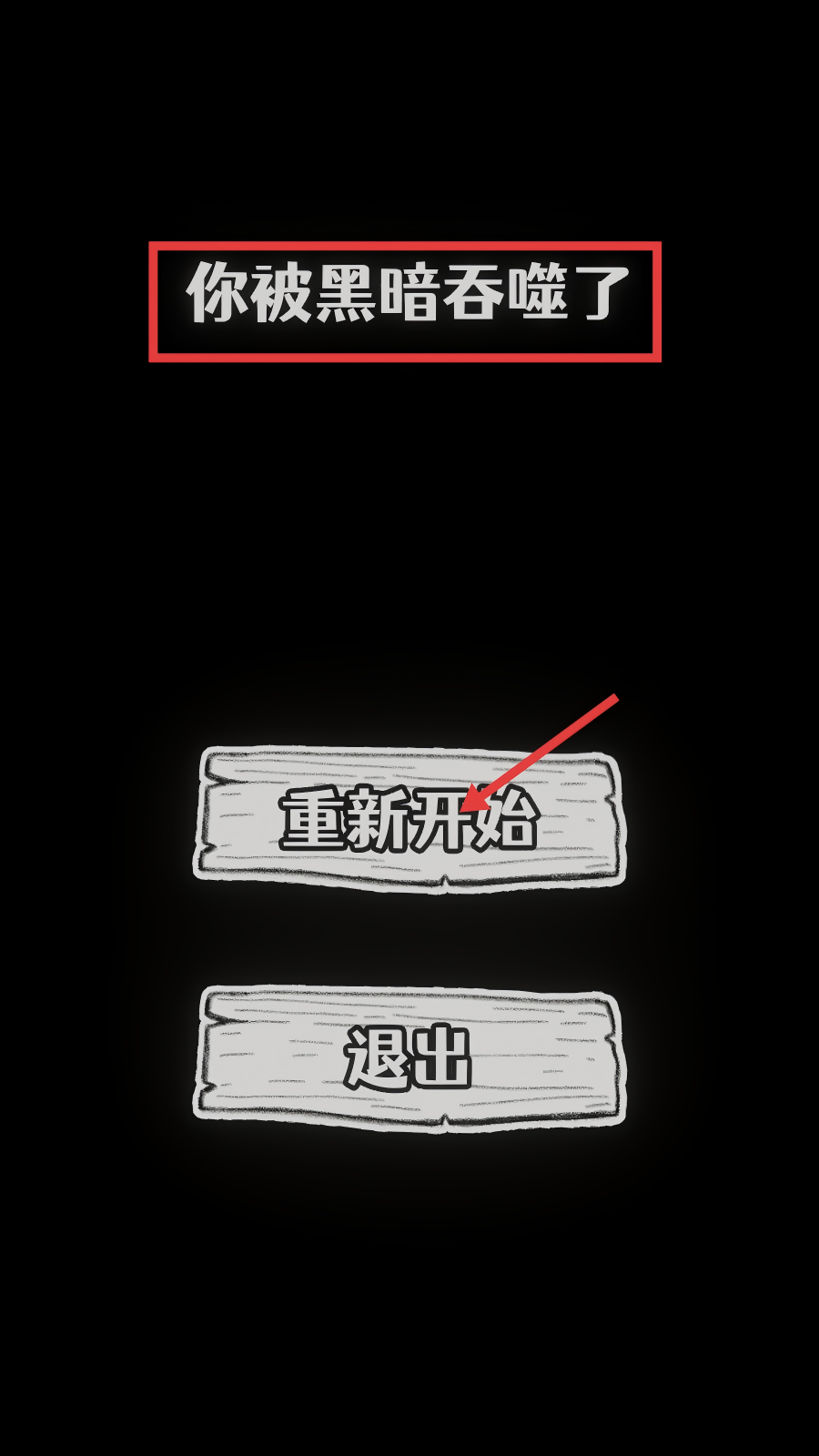 4、若出现【你被黑暗吞噬了】的失败提示,点击【重新开始】按钮重试,总结之前战斗的不足,调整策略后再次挑战。