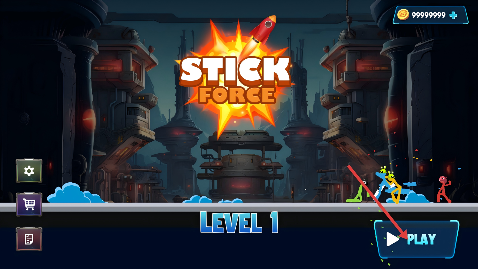 1、进入游戏后,看到【STICK-FORCE】标题与【LEVEL-1】,点击右下角【PLAY】按钮即可开始第一关。