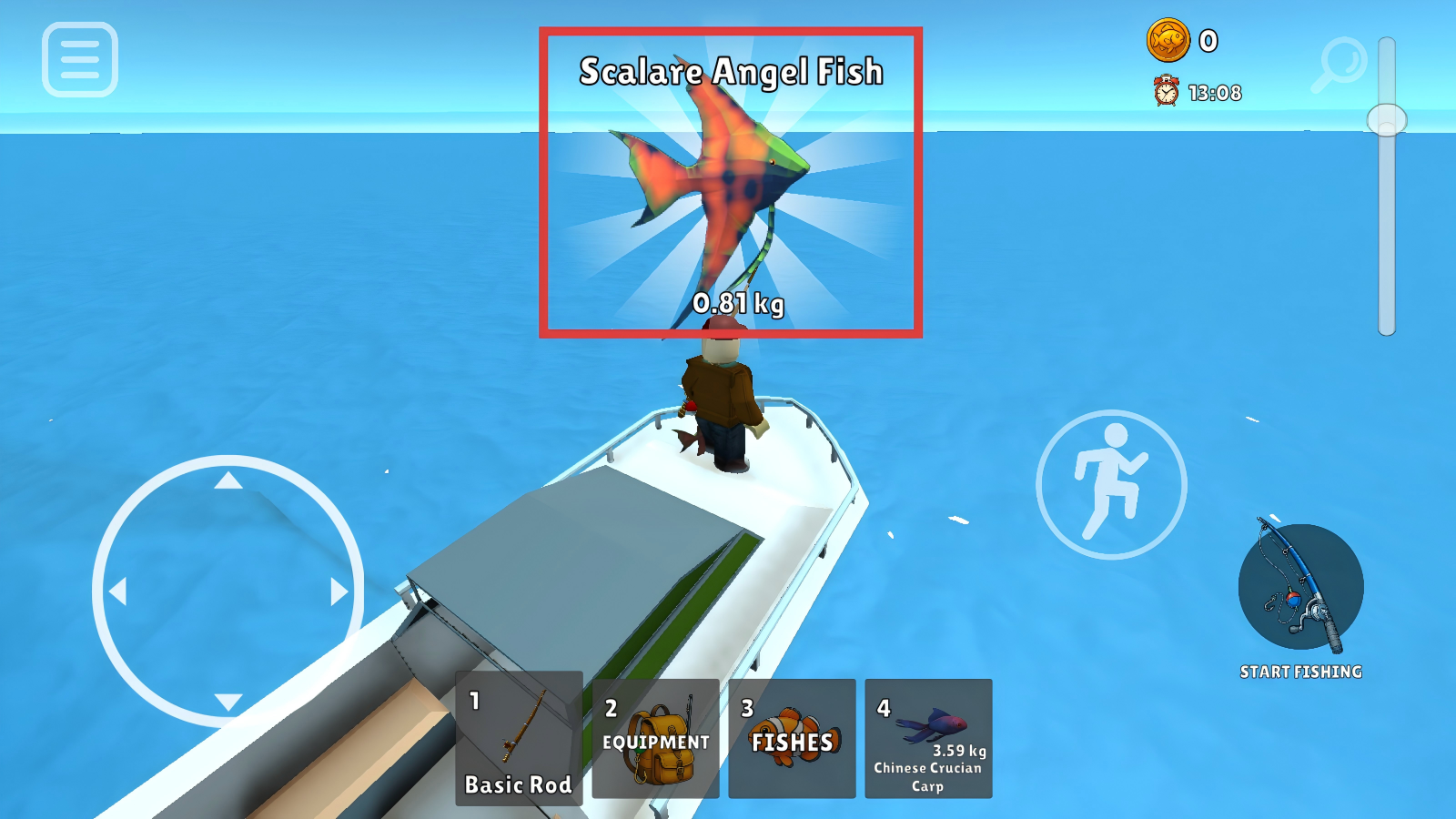 4、成功钓到【Scalare-Angel-Fish】,重量达0.81kg,可在下方道具栏查看已钓获的鱼类。