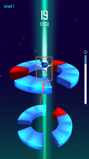 2、掌握弹跳技巧:通过点击或滑动屏幕控制太空人弹跳力度与方向,确保精准落在螺旋塔平台,避免掉落。