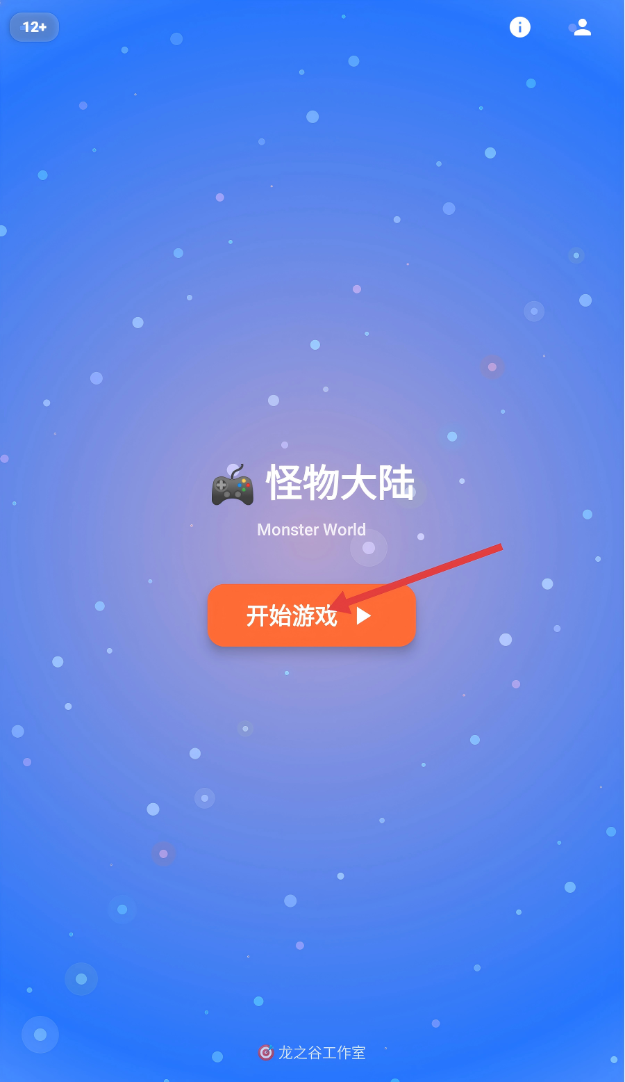 1、点击橙色【开始游戏】按钮,进入《怪物大陆》(MonsterWorld),开启冒险之旅。