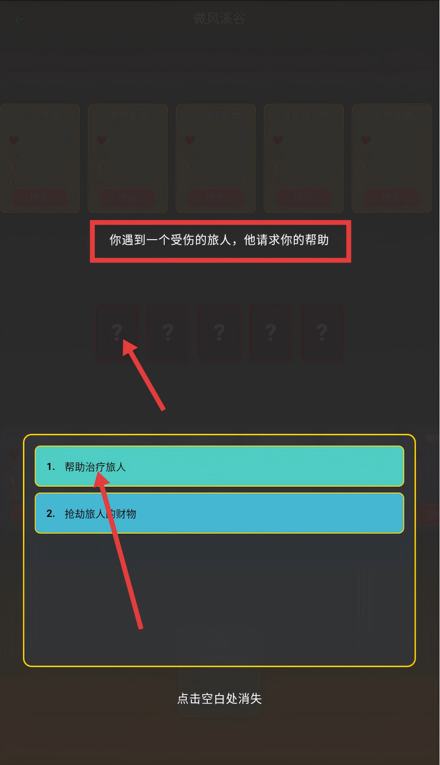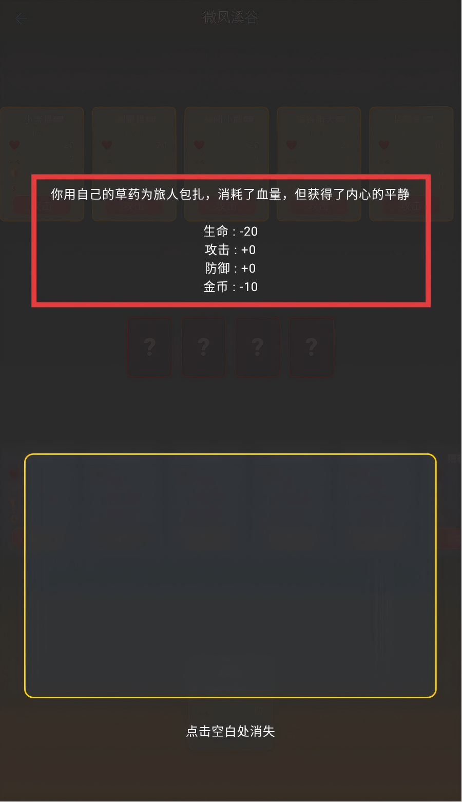4、帮助旅人后,会消耗【20】生命和【10】金币,虽无攻防增益,但能推进游戏剧情。