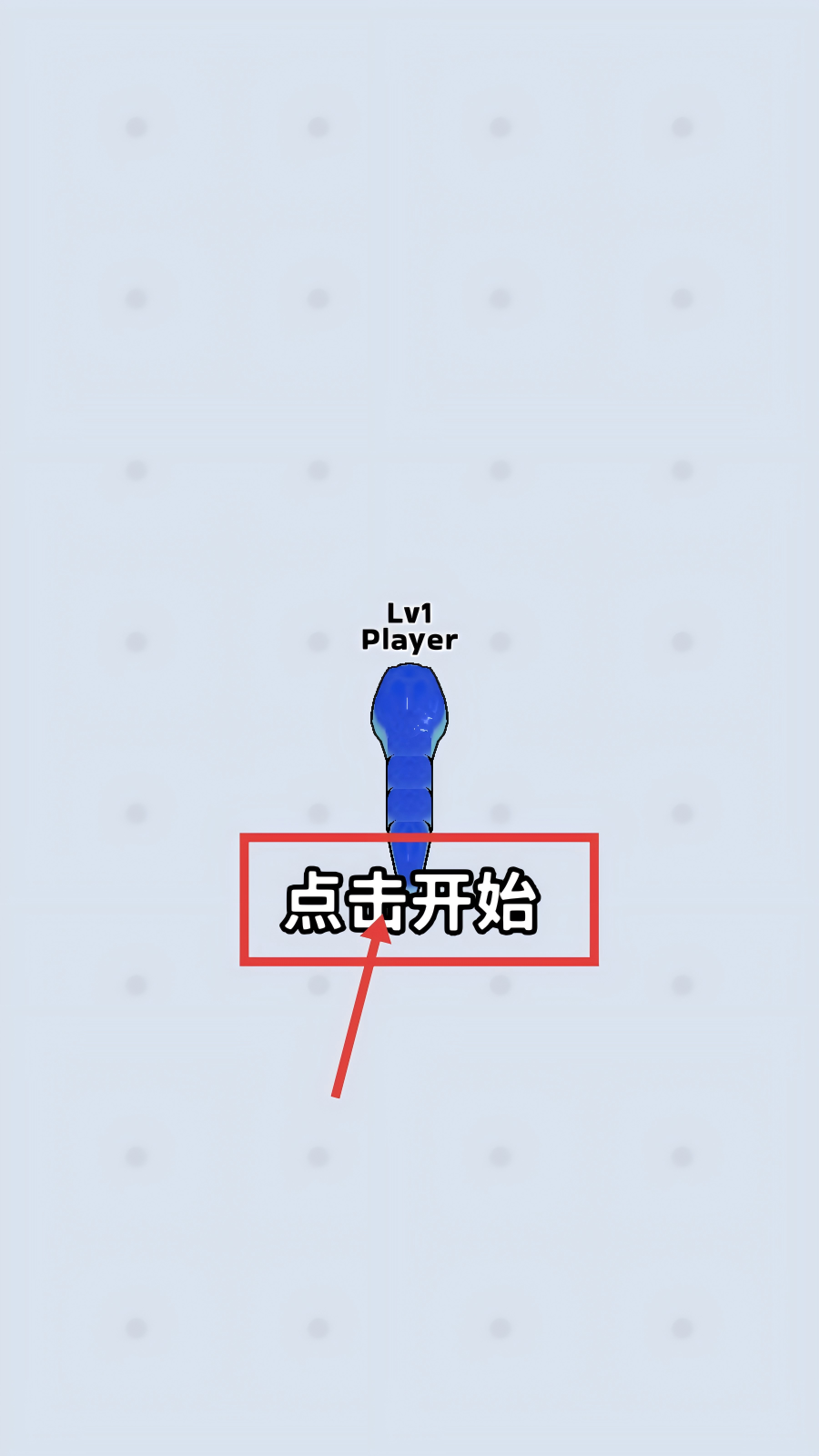 1、点击【点击开始】,操控Lv1的蓝色蛇形角色进入游戏,开启成长冒险。