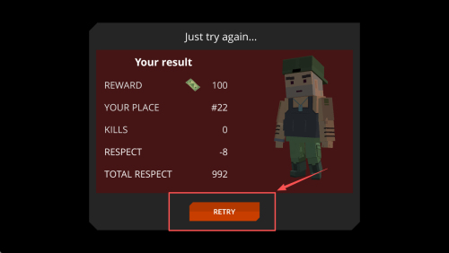 4、如何重新开始游戏?在游戏结束后,点击“RETRY”按钮重新开始新一轮战斗。