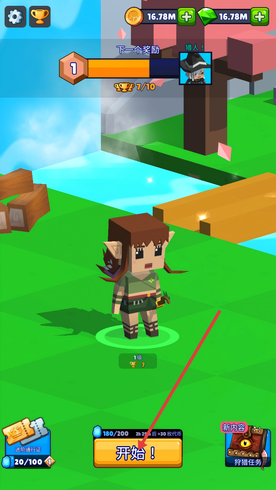 1、进入游戏后,可先留意界面上方的货币数值,再点击【开始!】按钮开启游戏进程。