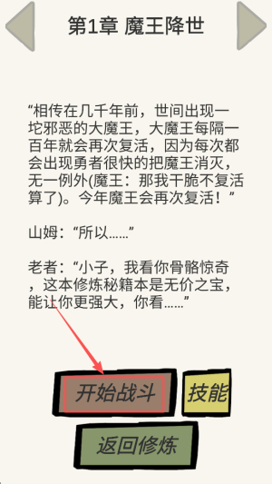 2、接着,阅读故事章节后点击“开始战斗”。