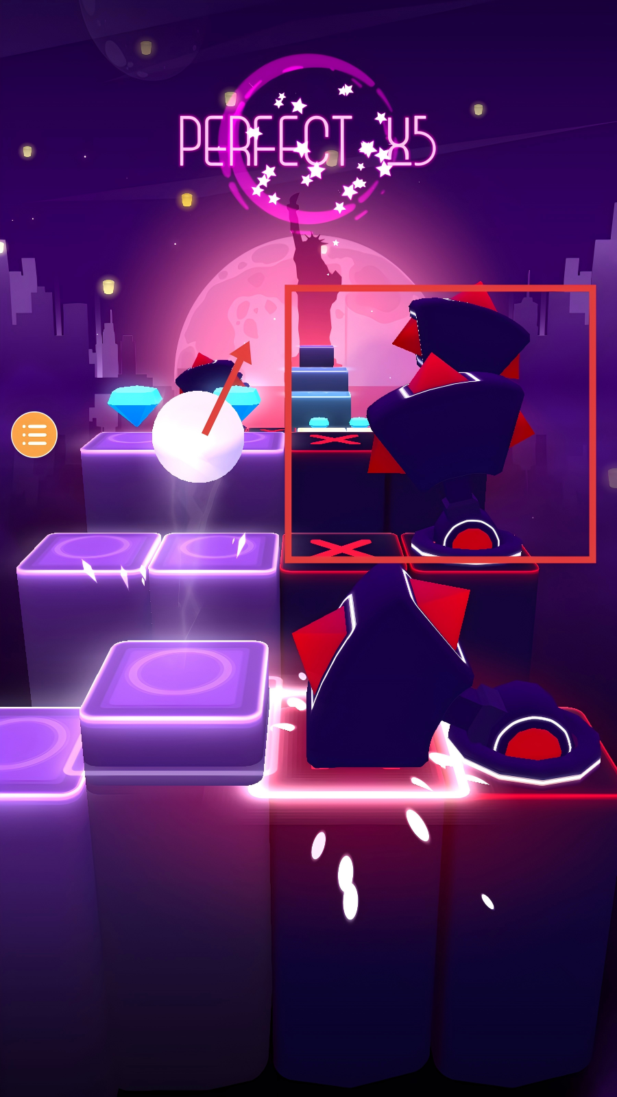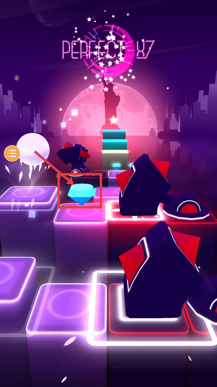 2、在关卡中移动时,留意蓝色钻石,尽可能收集它们,同时保持操作完美度,像图中【PERFECT×7】那样获取高分。