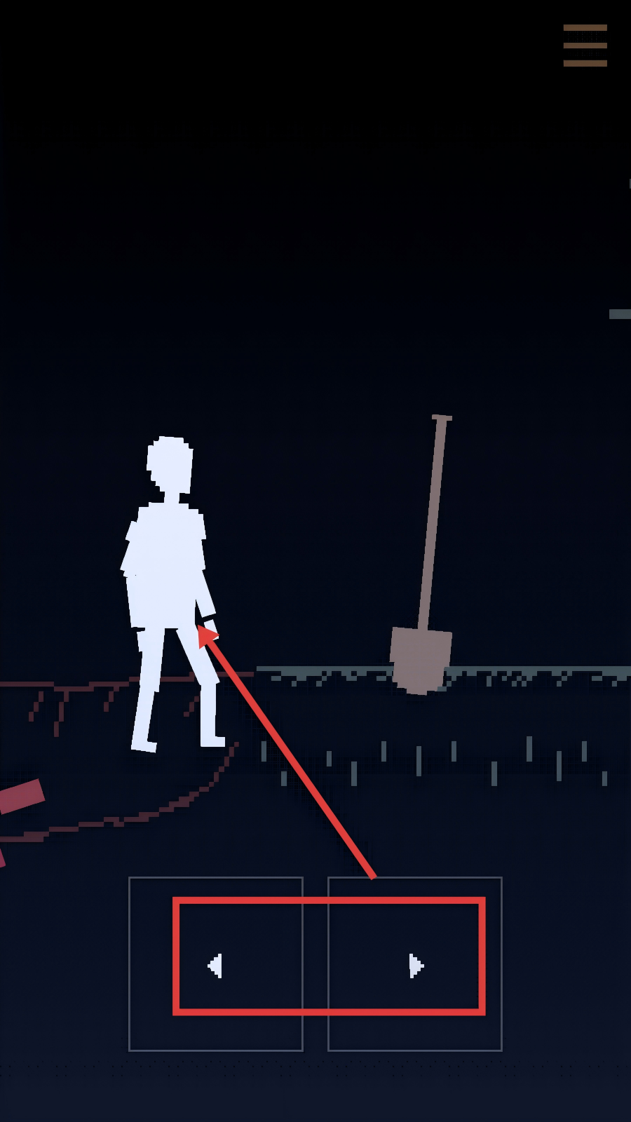 1、通过底部左右箭头控制角色移动,靠近场景中的道具(如铲子),探索场景收集交互元素。