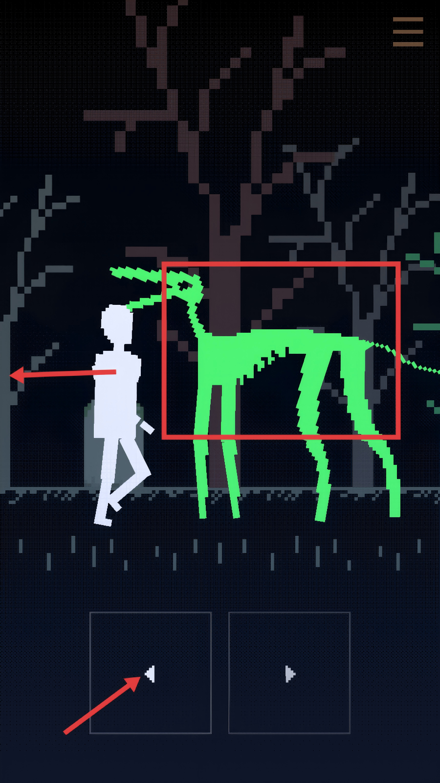 2、遇到绿色怪异生物时,点击左箭头让角色向左移动,远离危险生物,避免触发冲突。