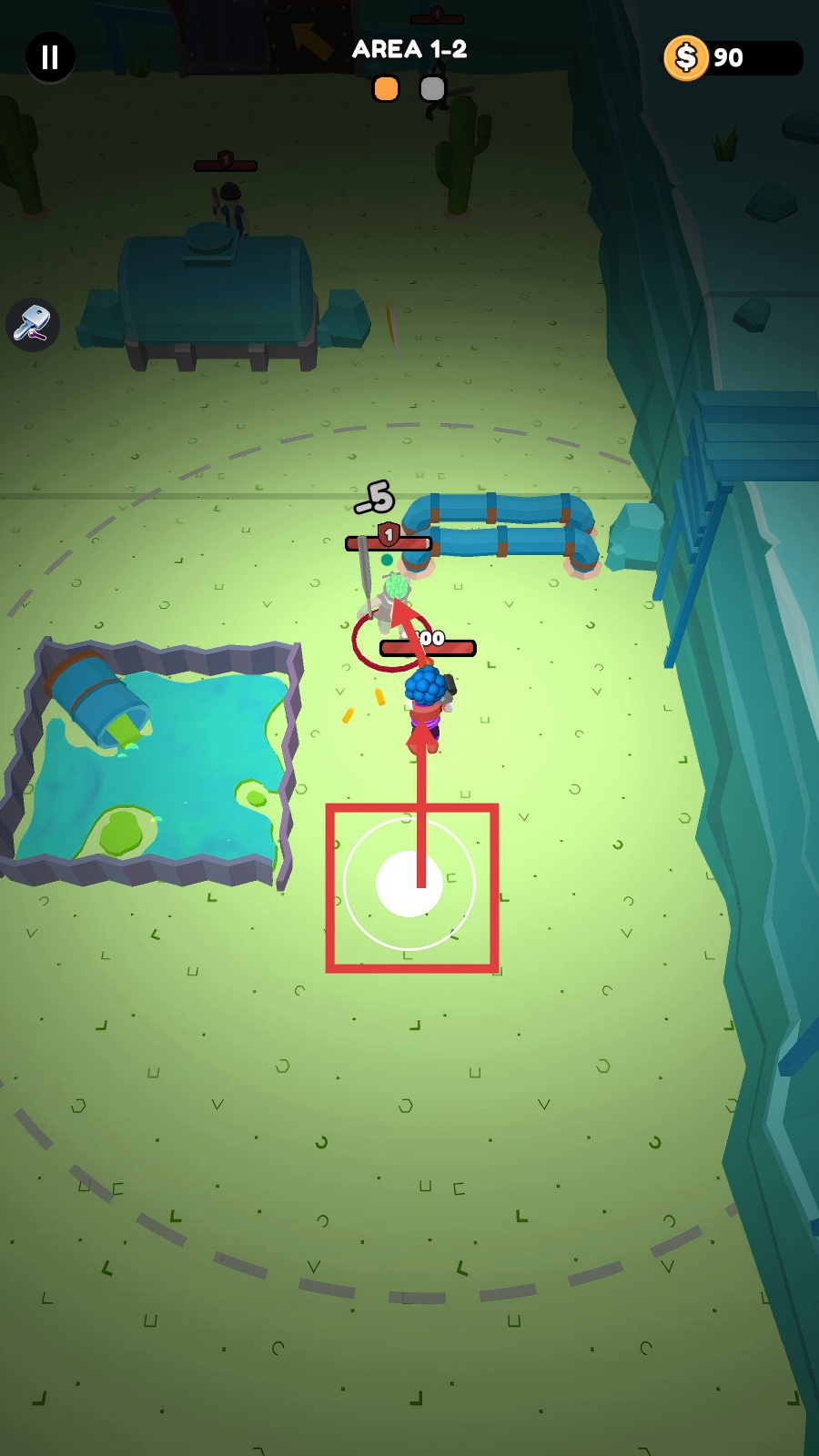 2、在战斗区域(如AREA1-2),瞄准敌人,利用角色脚下的瞄准圈锁定目标,发起攻击。