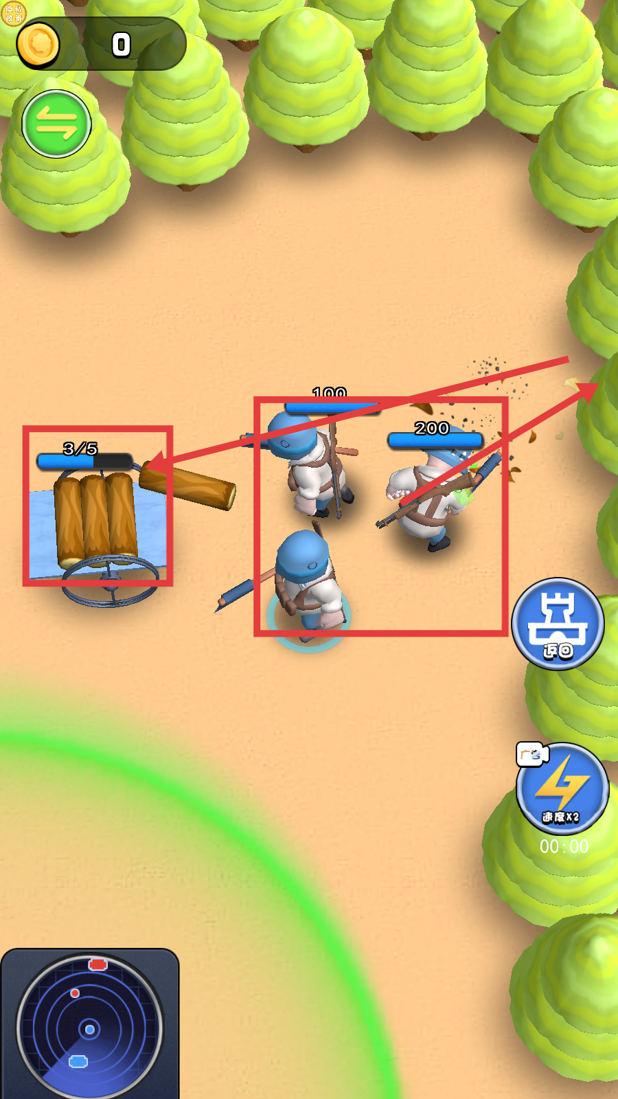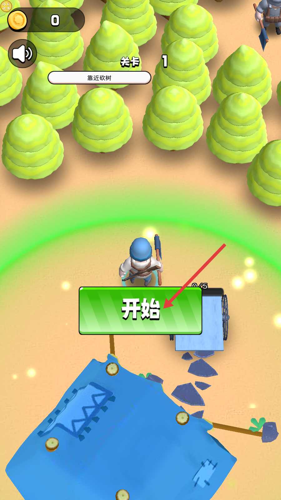 1、关卡1-点击【开始】,开启砍树收集木材的任务,迈出关卡挑战的第一步。