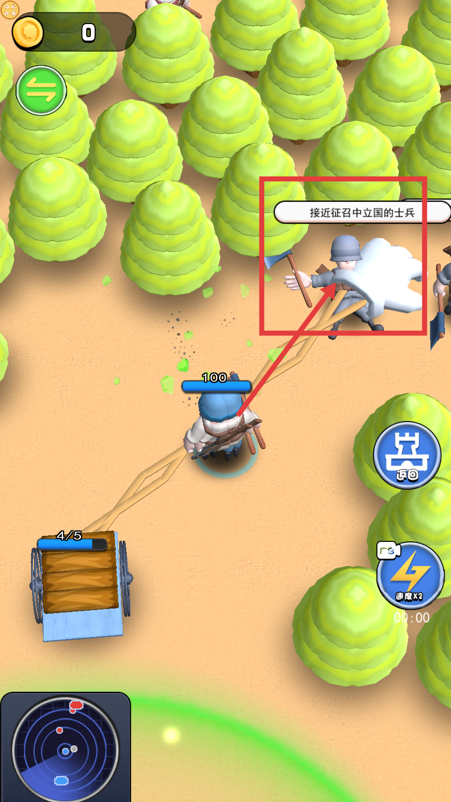 2、靠近手持斧头的中立国士兵,完成征召流程,让其加入队伍,增强后续行动的力量。
