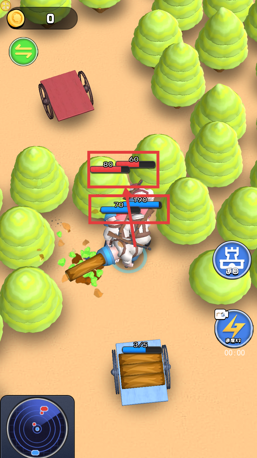 3、带领队伍砍伐树木,将木材搬运至车上,逐步积累资源,过程中注重团队协作的效率。