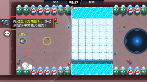 2、如何操作角色?拖动左下角摇杆移动角色到黄色光圈处。