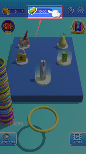 2、掌握套圈技巧:观察物品位置与距离,通过操作控制圈圈抛出力度与方向,确保圈圈精准套中目标物品。