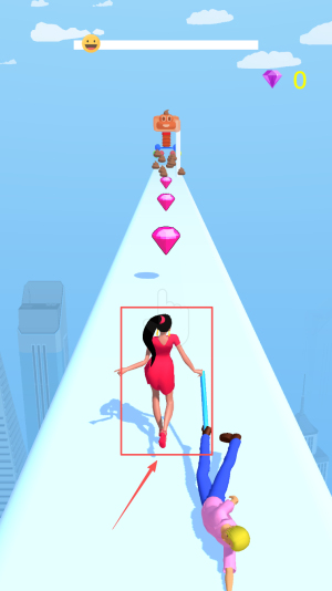 2、掌握操控技巧:通过操作控制角色在赛道移动,避开障碍的同时,精准收集沿途道具与钻石,积累闯关优势。
