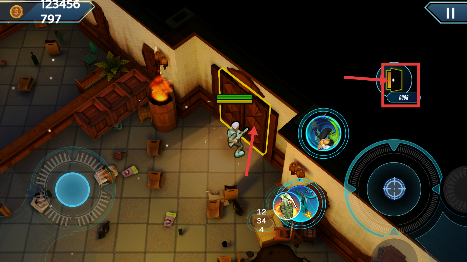 4、清理当前区域敌人后,找到标有【DOOR】的交互点,靠近并触发,即可推进至下一场景。