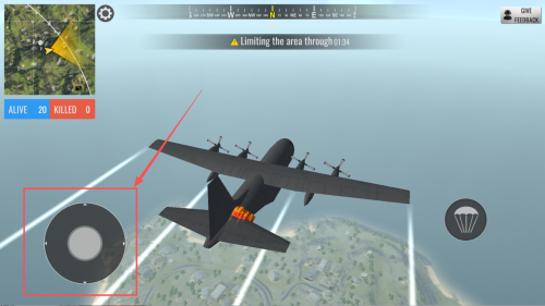 2、如何跳伞进入战场?在飞机上时,找到并点击“CALL AIRDROP”按钮,然后使用方向键控制降落伞降落位置。