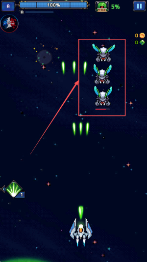 1、控战机躲弹幕:操控太空船在屏幕中灵活移动,避开外星人的密集弹幕,优先躲避伤害高的弹道,确保战机存活。