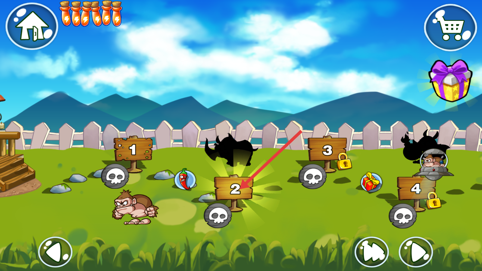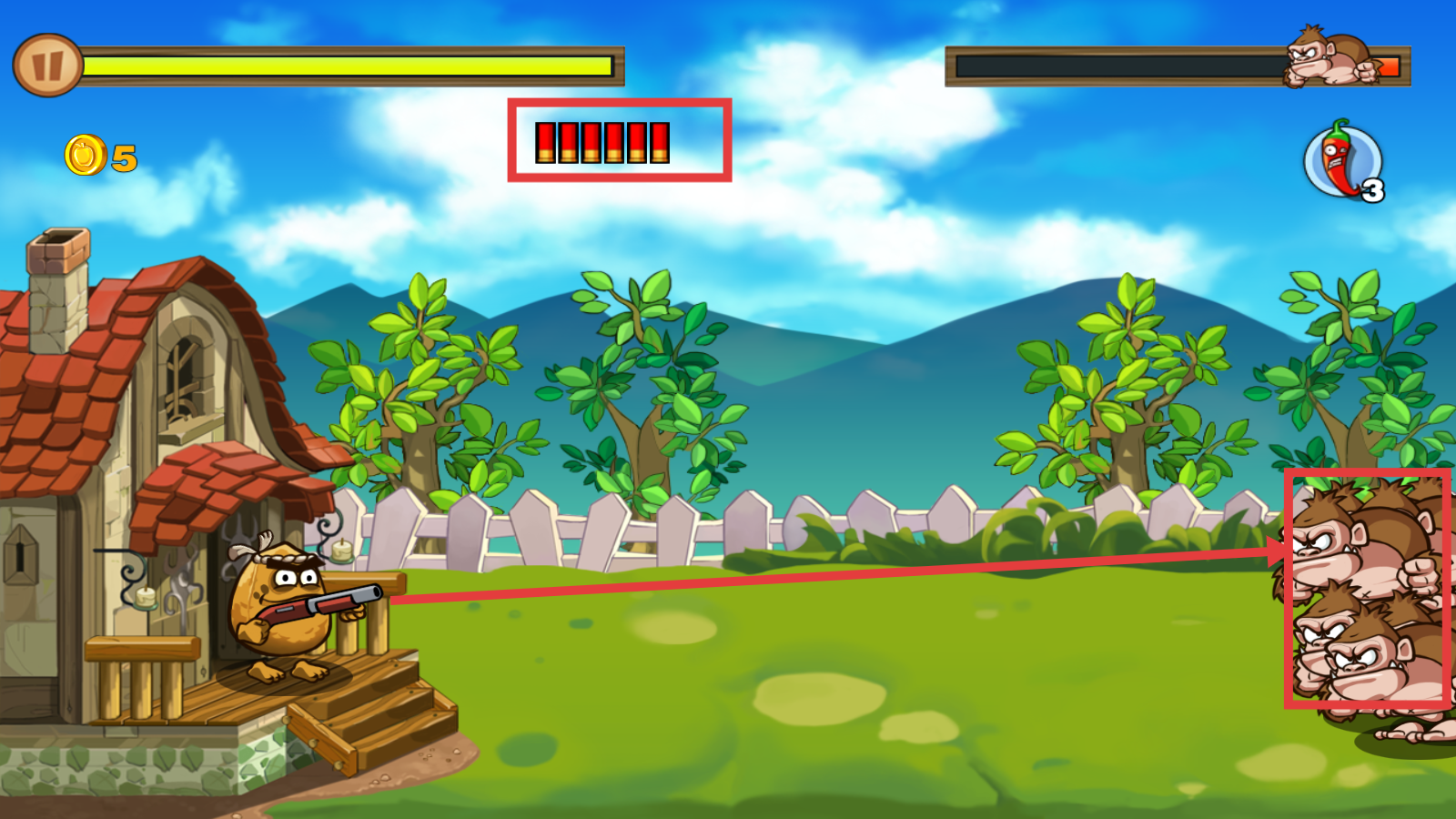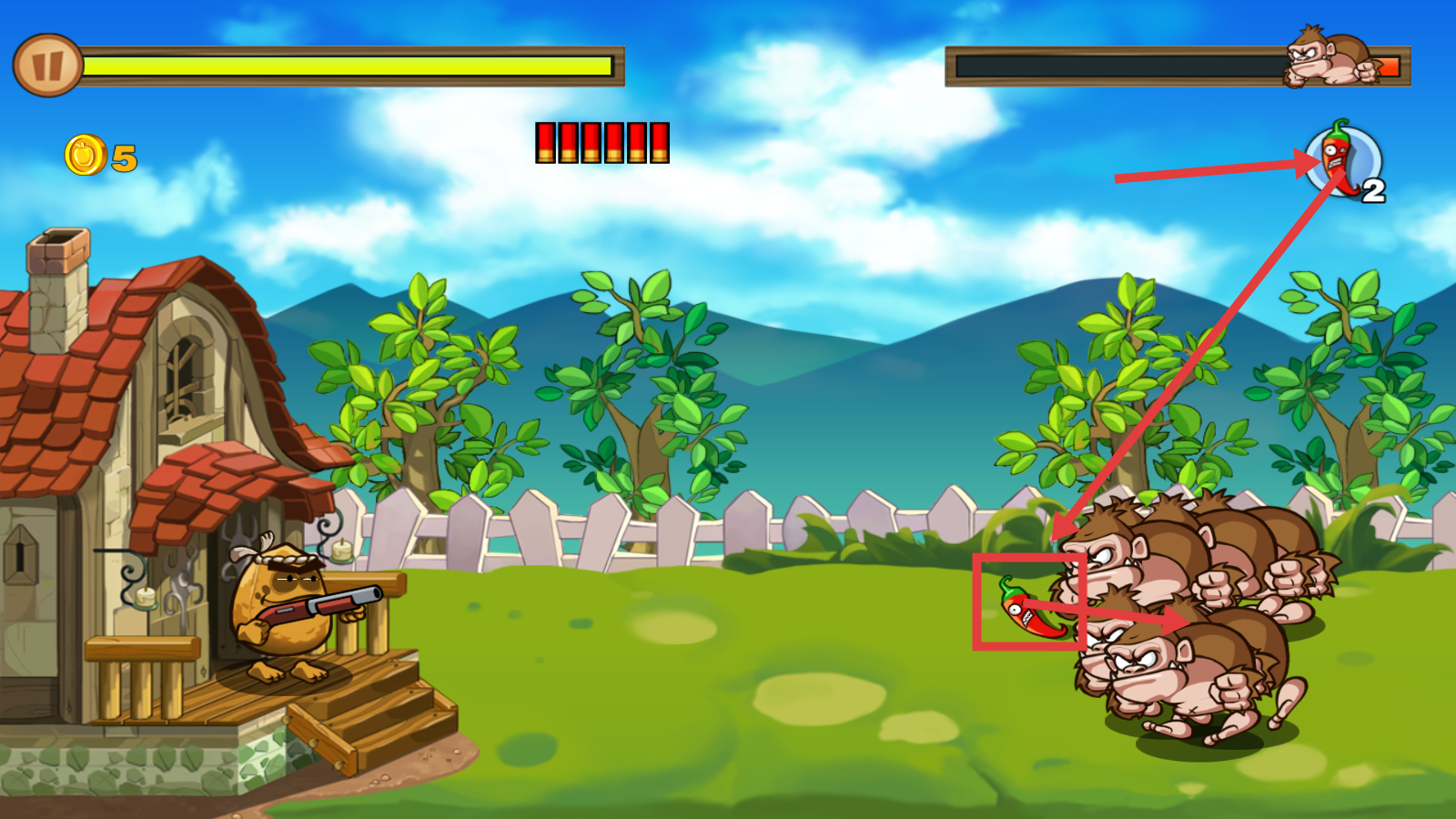 3、若敌人数量较多,点击右上角的辣椒道具,将其投掷到猩猩群中,可对敌人造成有效打击。