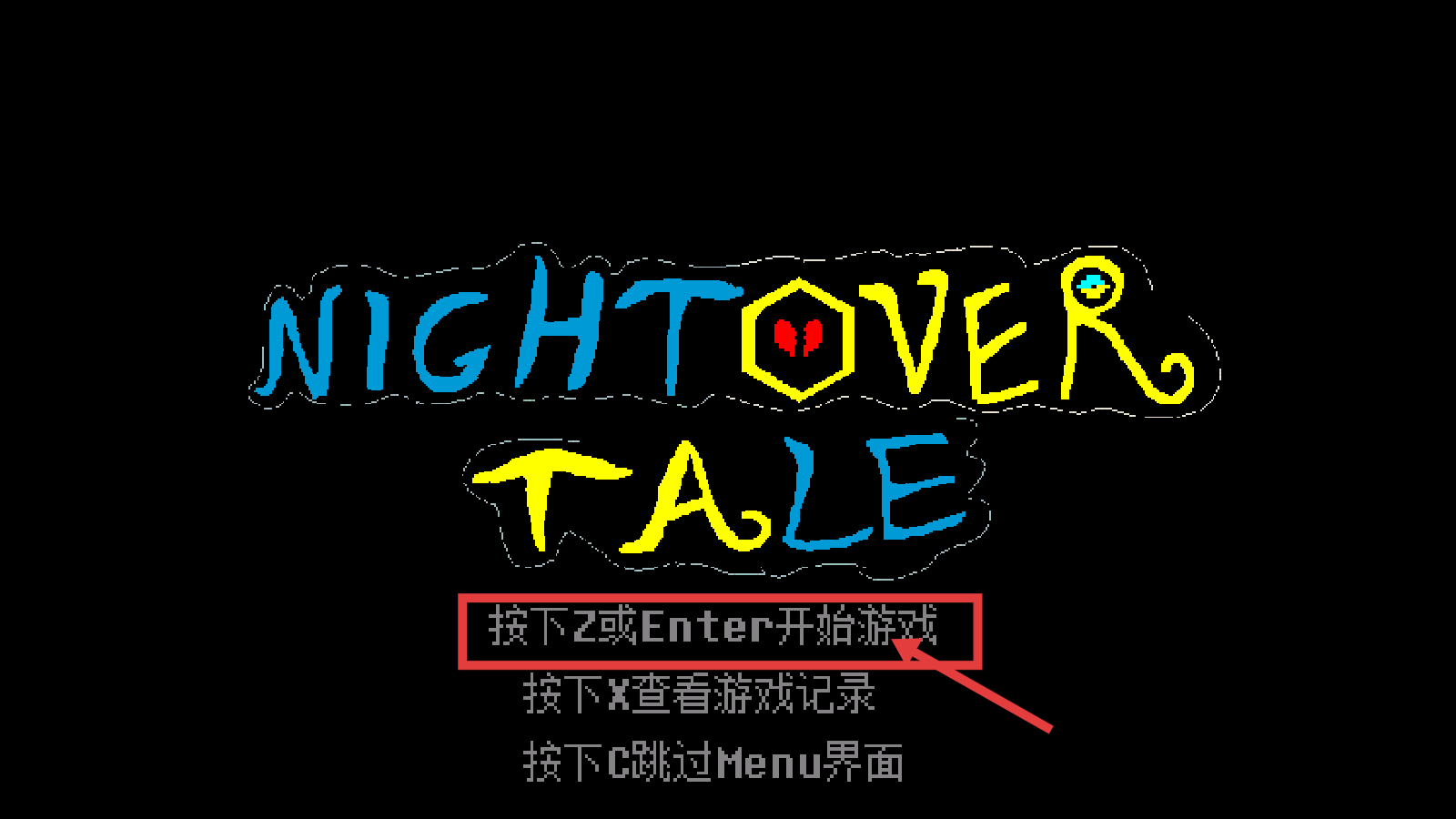 1、进入【NightoverTale】游戏,按下【Z】或【Enter】键,即可开始游戏,开启冒险之旅。