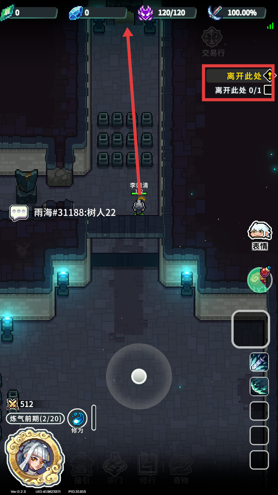 4、完成区域内任务后,沿着指引方向移动角色,完成【离开此处-0/1】任务,前往新的区域继续探索。