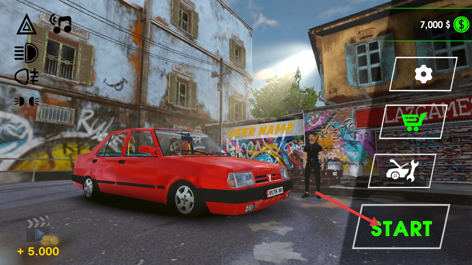 1、进入游戏界面后,点击绿色【START】按钮,准备开启汽车驾驶挑战。