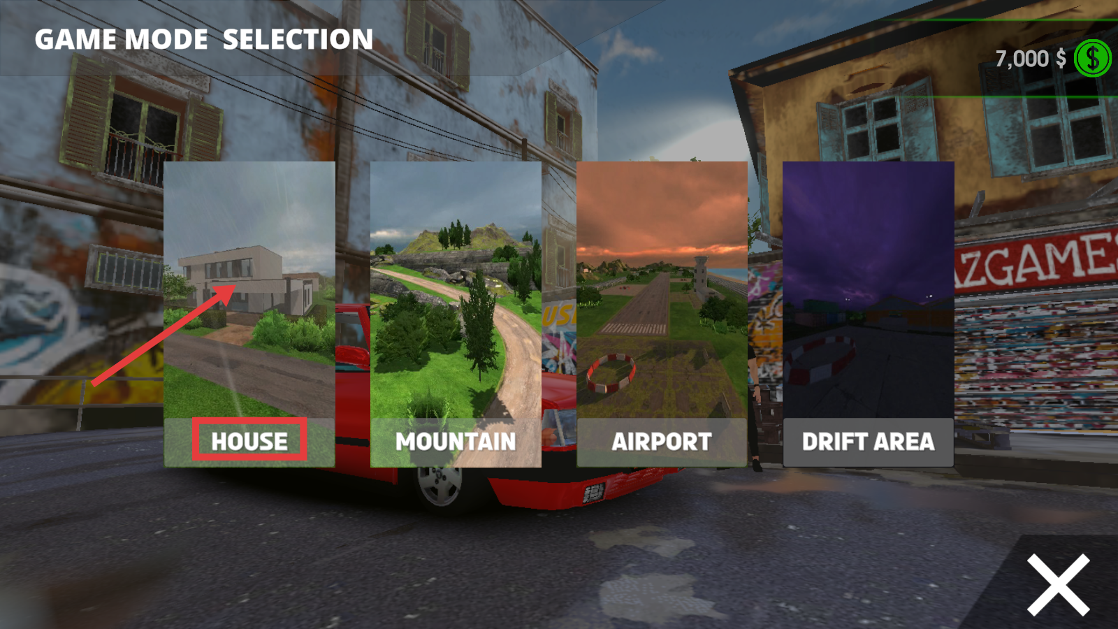 2、在【GAMEMODESELECTION】界面,可选择【HOUSE】等场景模式,进入对应驾驶环境。