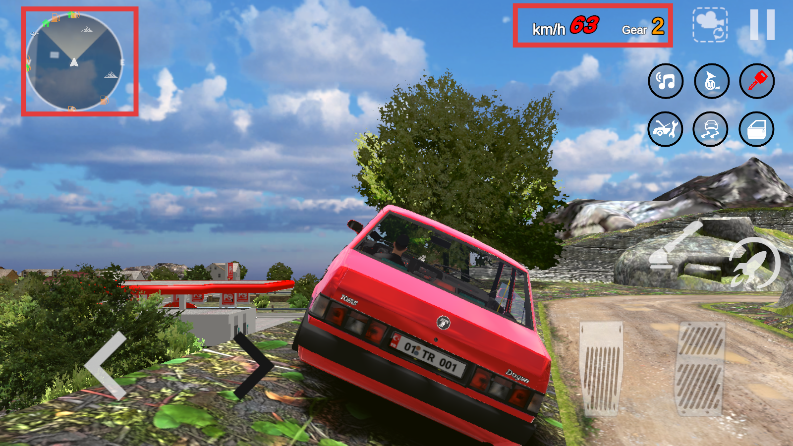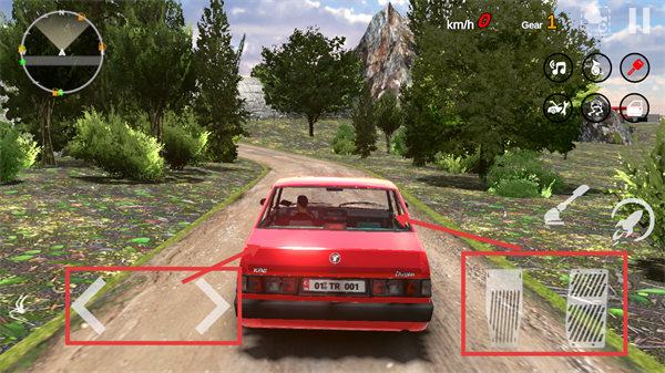 3、驾驶时,通过左侧方向键控制汽车转向,右侧踏板分别控制油门和刹车,操控汽车在道路上行驶。