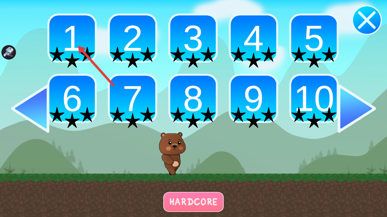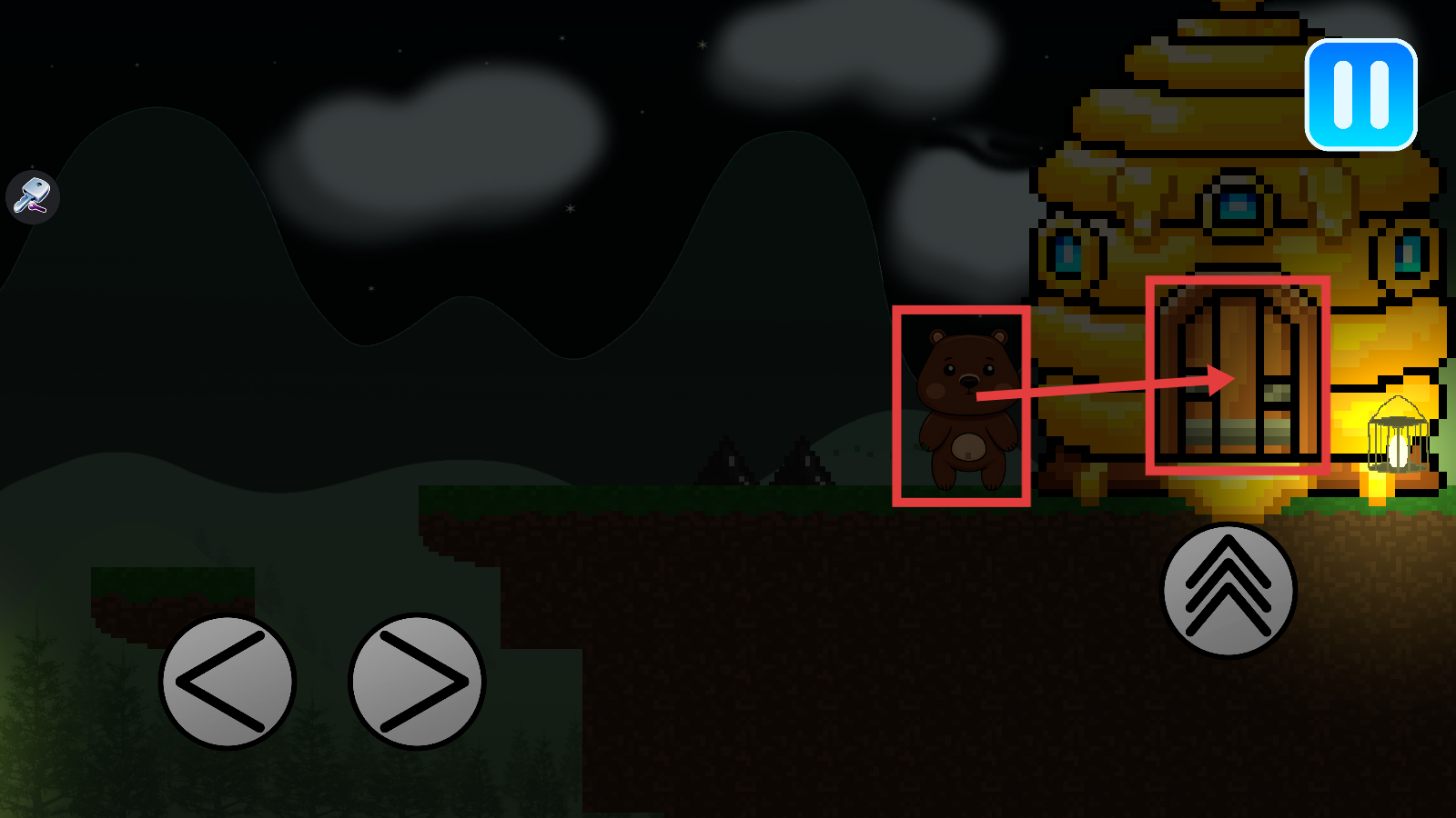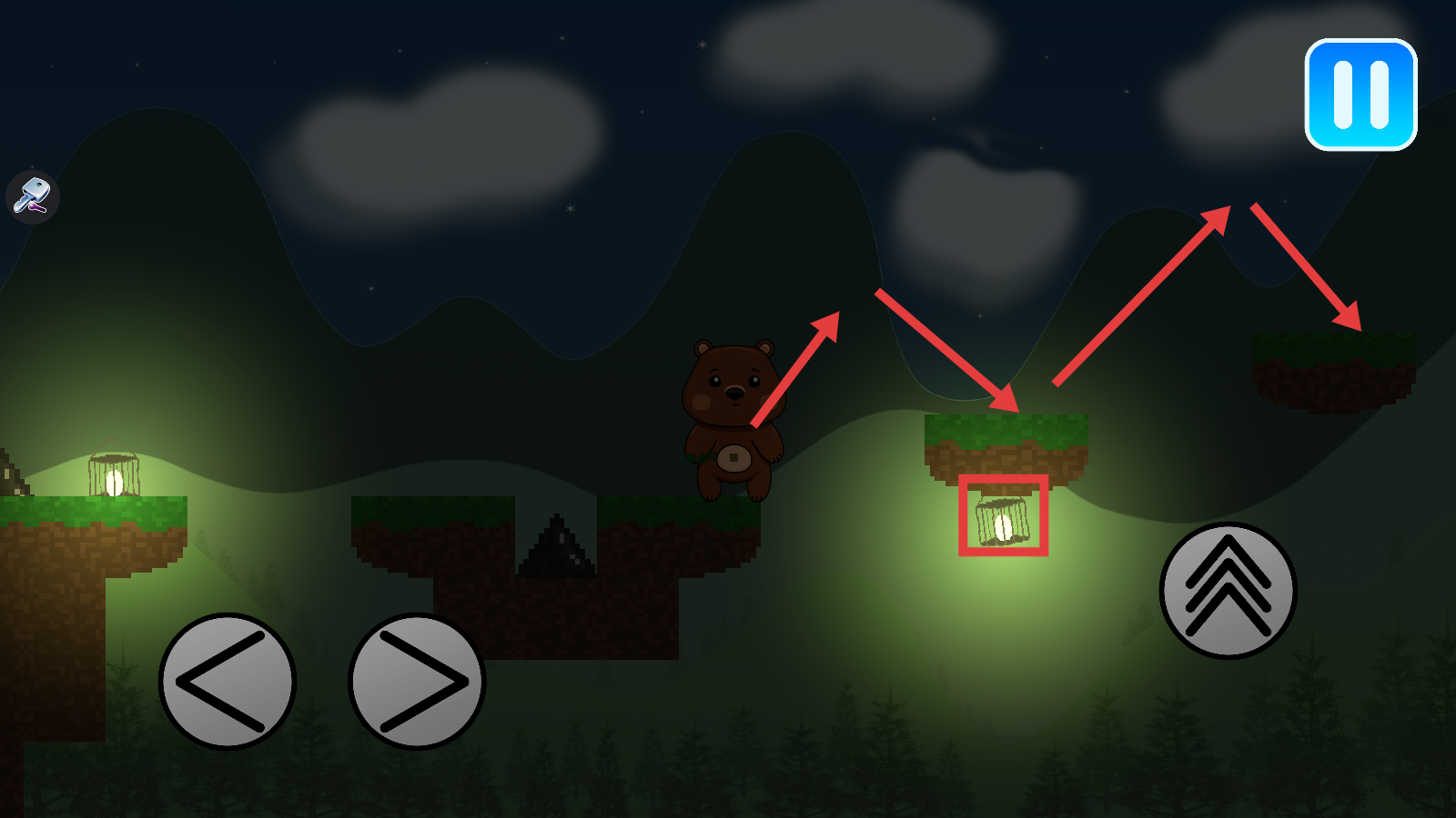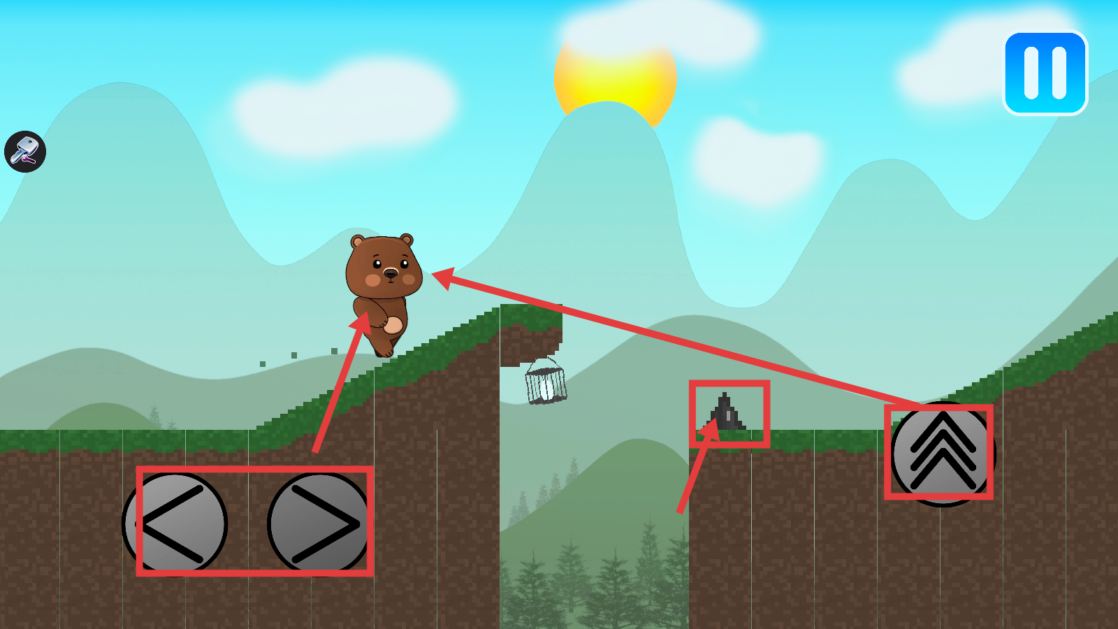 2、在关卡内,利用左侧的左右方向键控制小熊移动,右侧的向上键使小熊跳跃,避开障碍物并朝着目标位置前进。