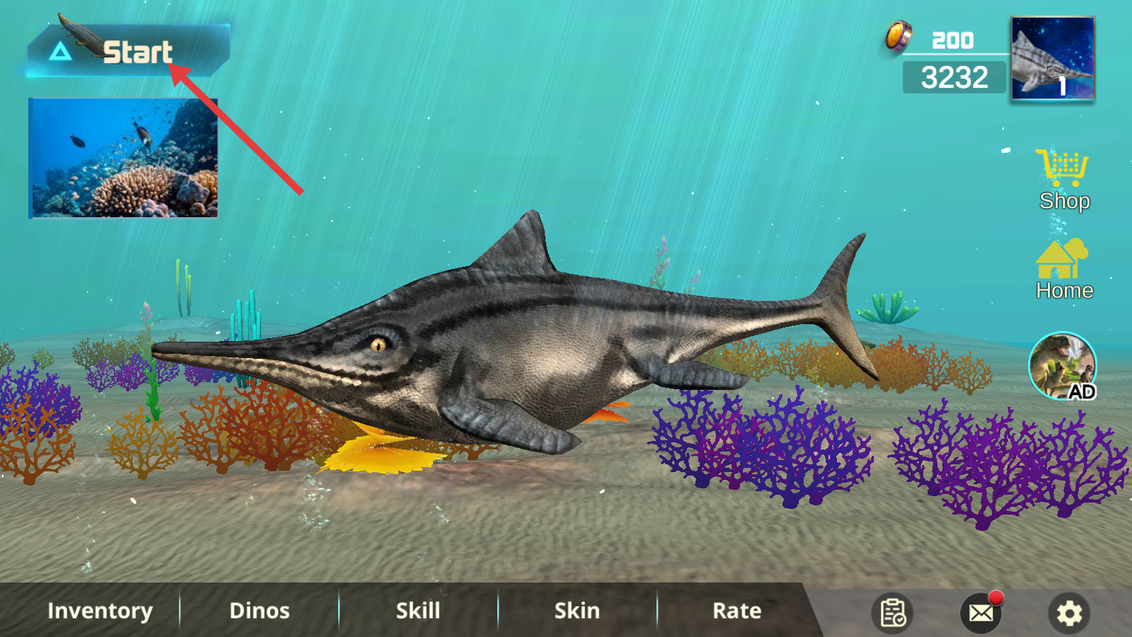 1、进入游戏后,点击左上角【Start】按钮开始,可先熟悉【Shop】【Home】等界面功能,初始有200金币可后续使用。