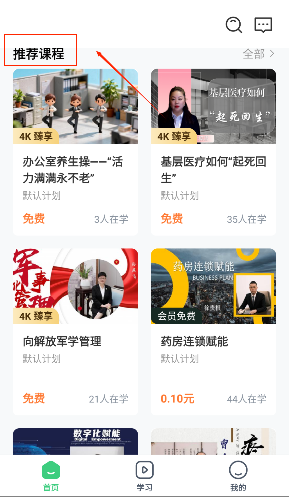 1、平台提供丰富多元的健康专业课程资源,涵盖多领域方向知识,满足不同用户的学习需求与兴趣,支持免费学习与稳步成长。