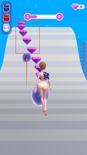 2、控制角色移动:通过操作调整角色方向,在赛道上精准拾取不同颜色颜料,让角色身体逐步呈现多彩彩绘效果。